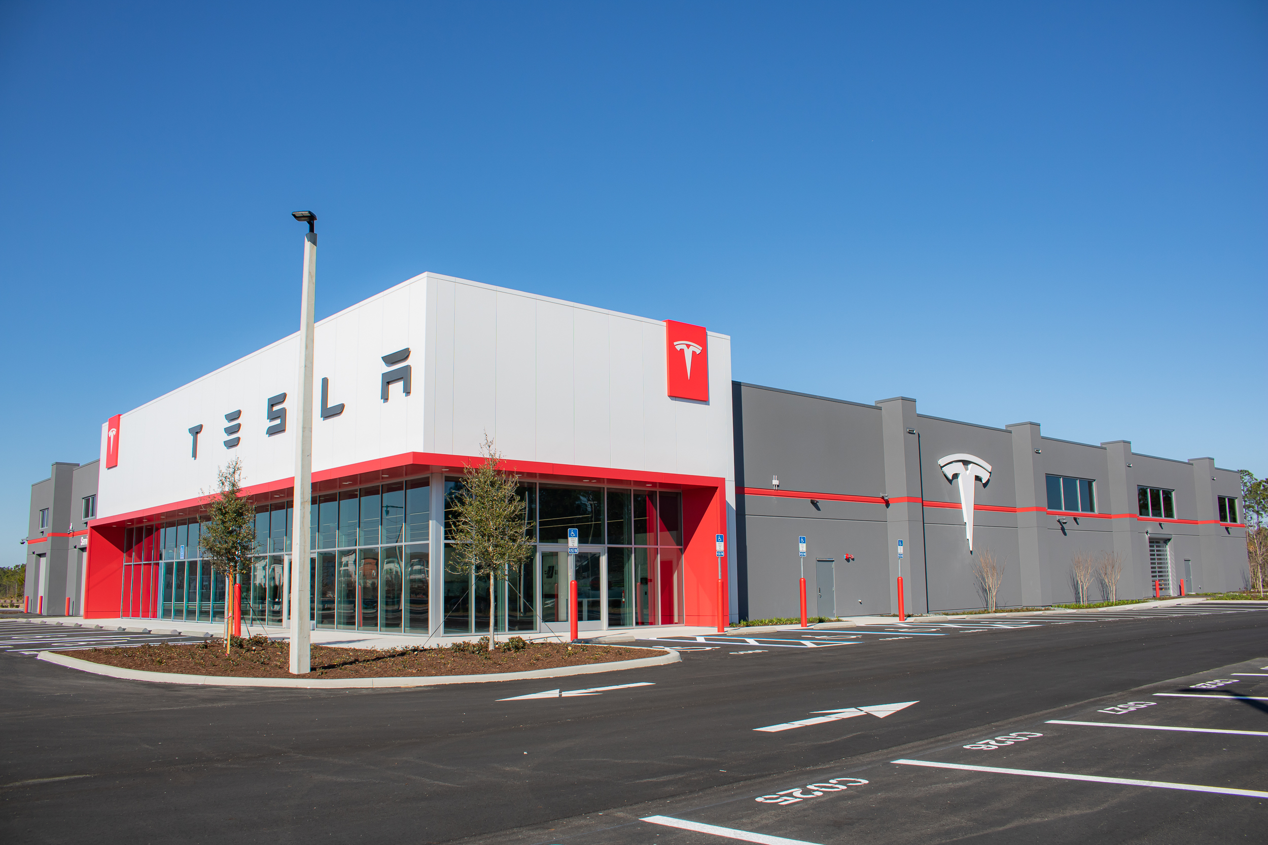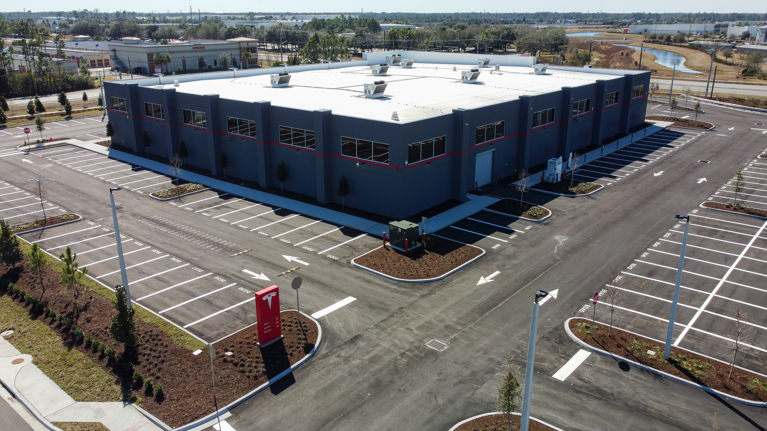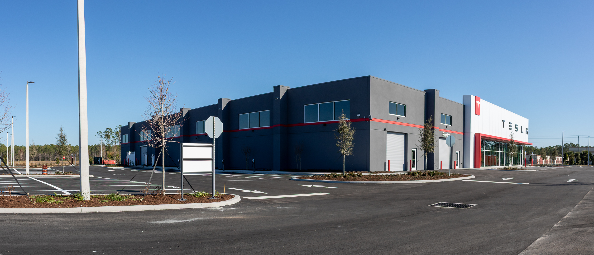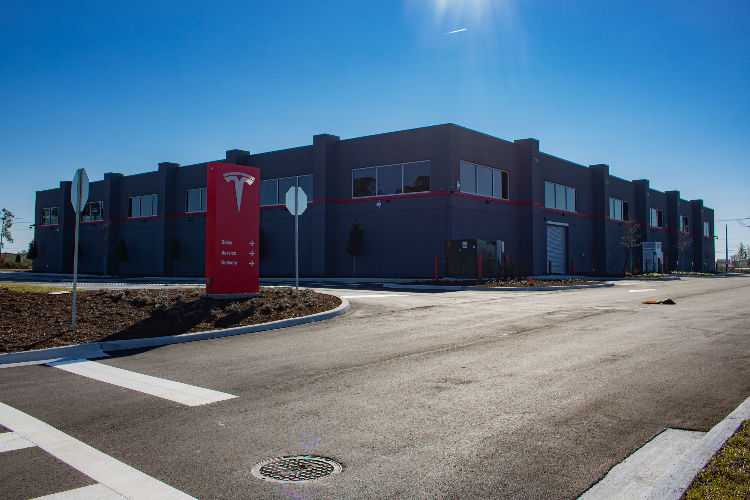 New tilt wall construction of 35,527 sf of a Tesla Sales, Service and Delivery Center with all associated site work.