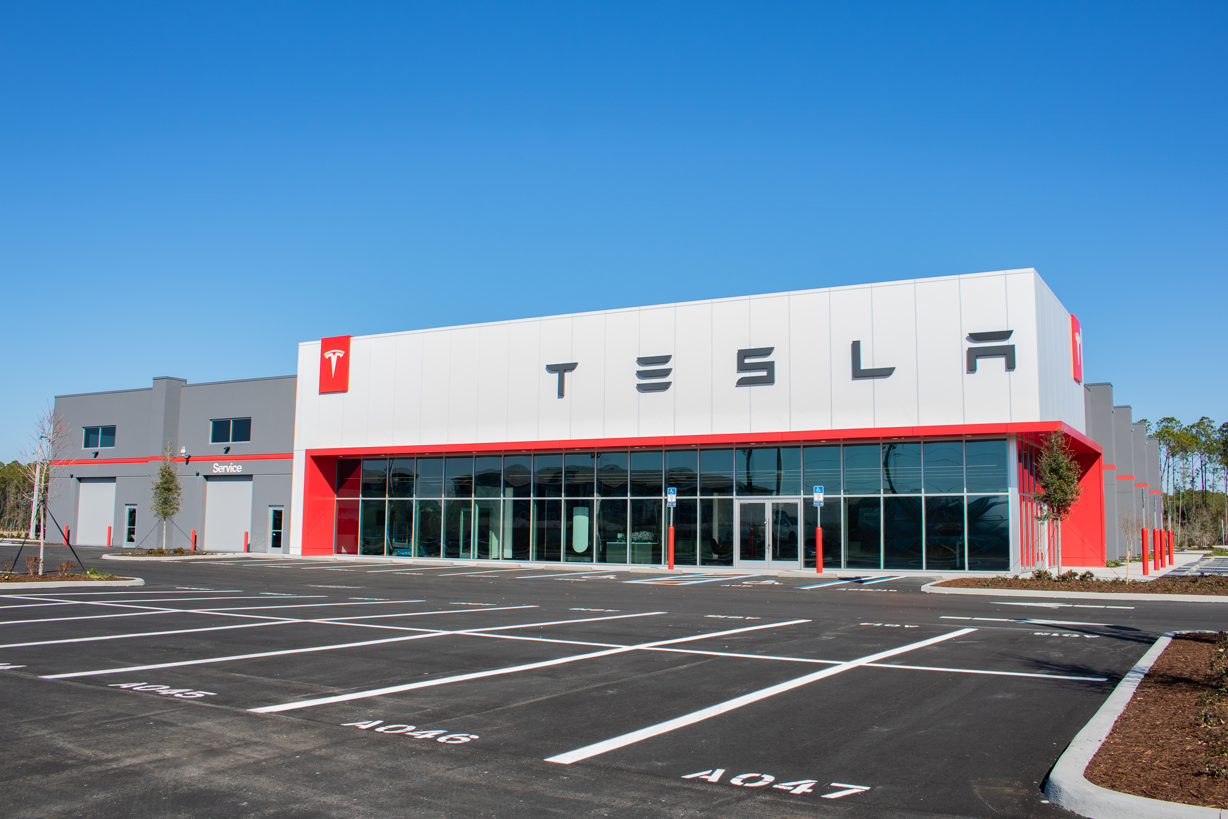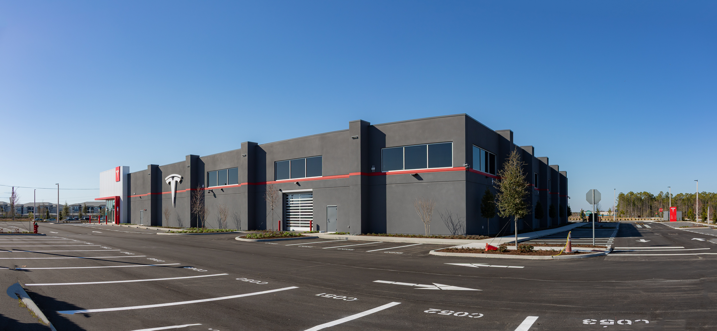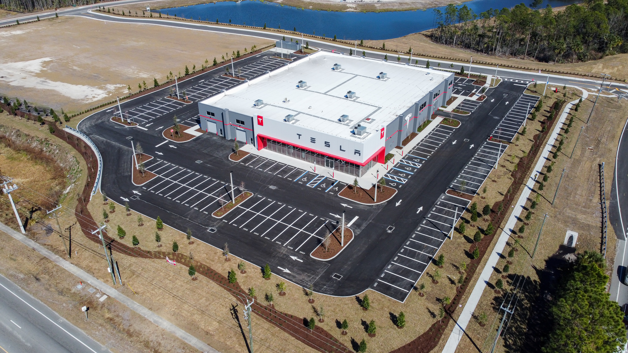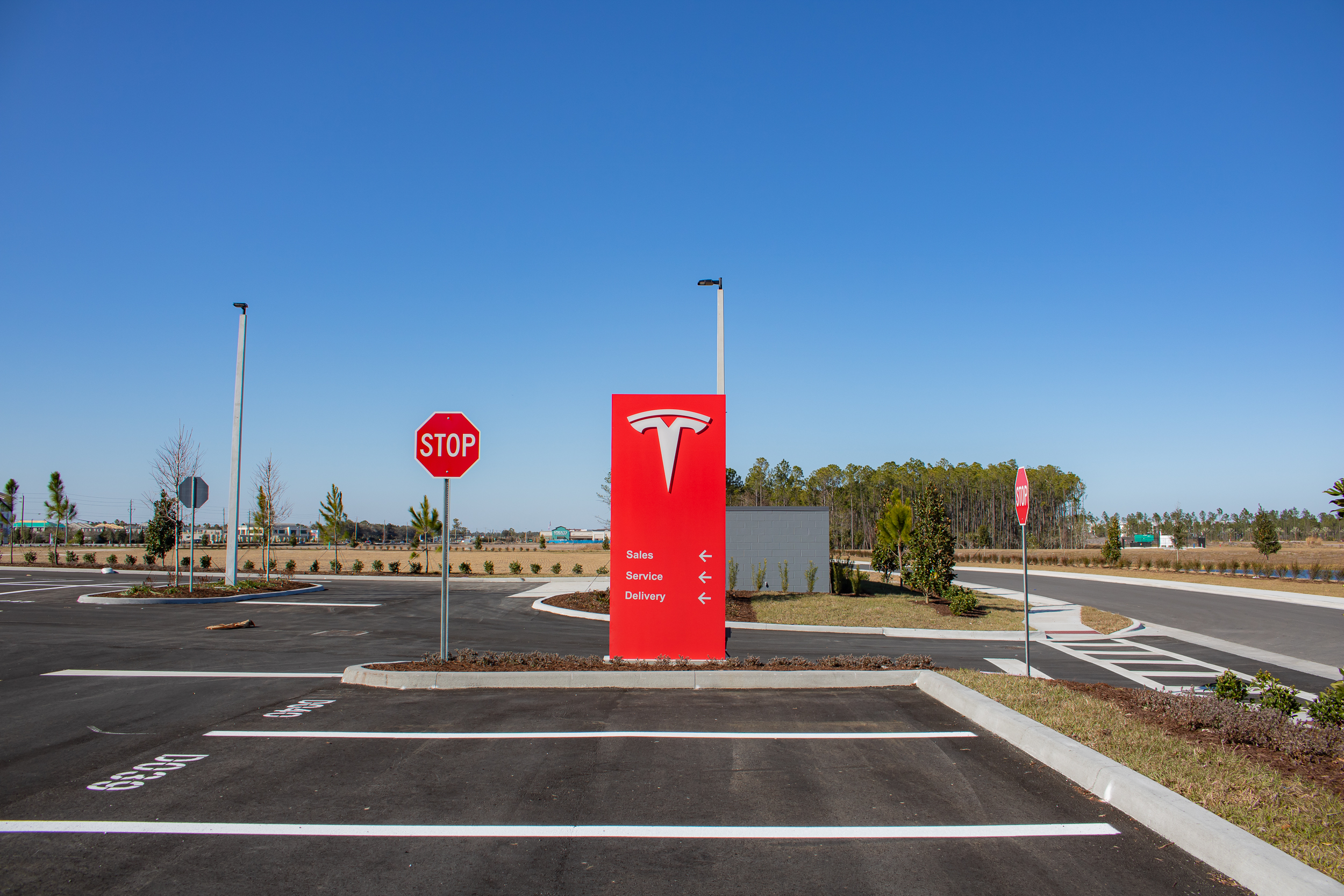 New tilt wall construction of 35,527 sf of a Tesla Sales, Service and Delivery Center with all associated site work.