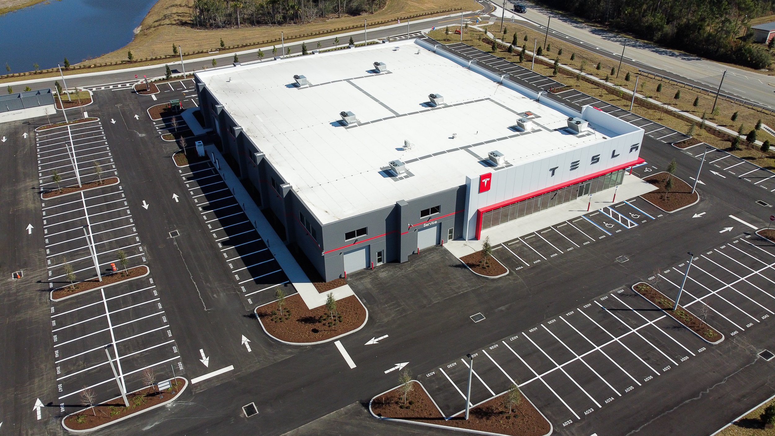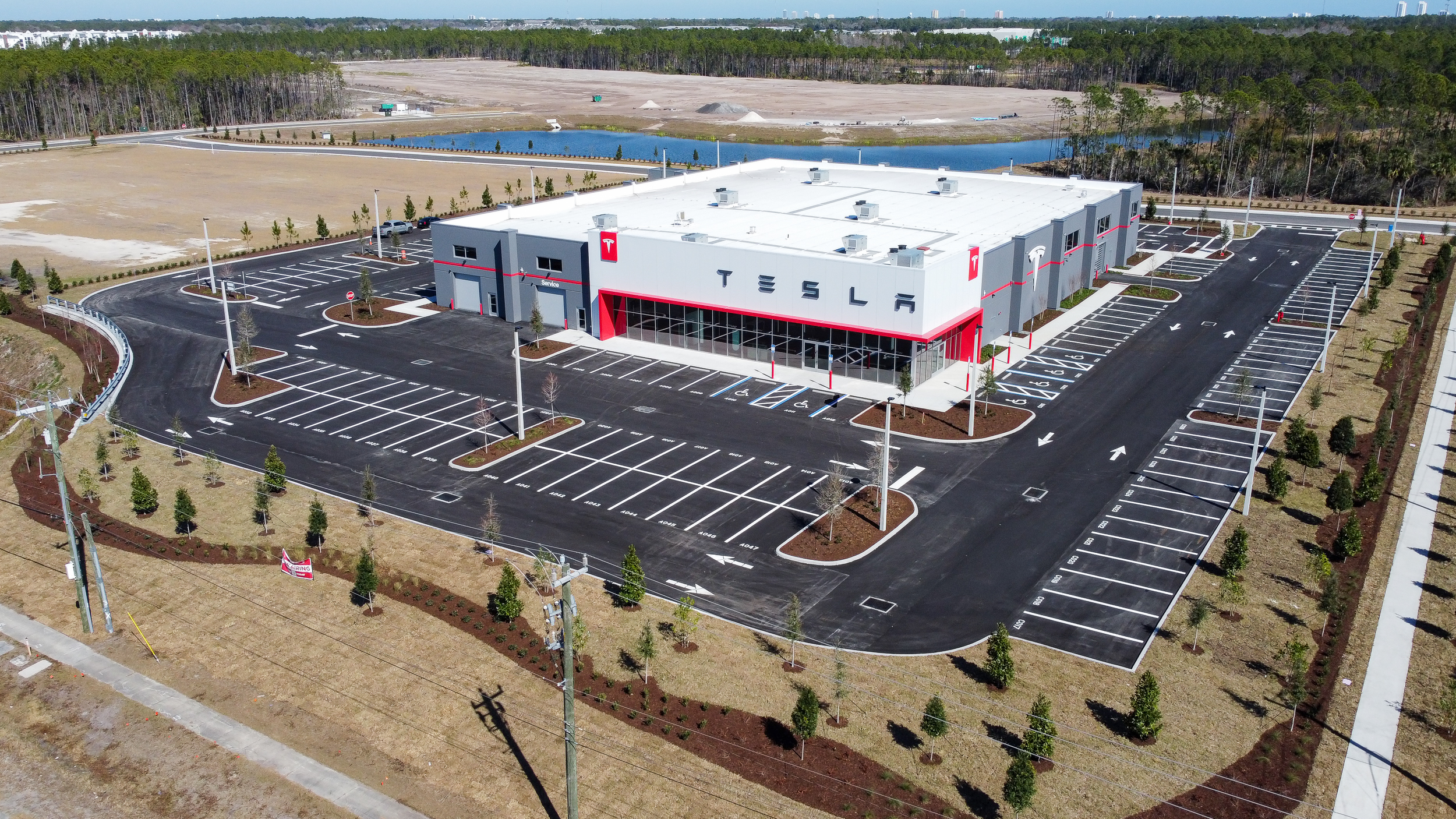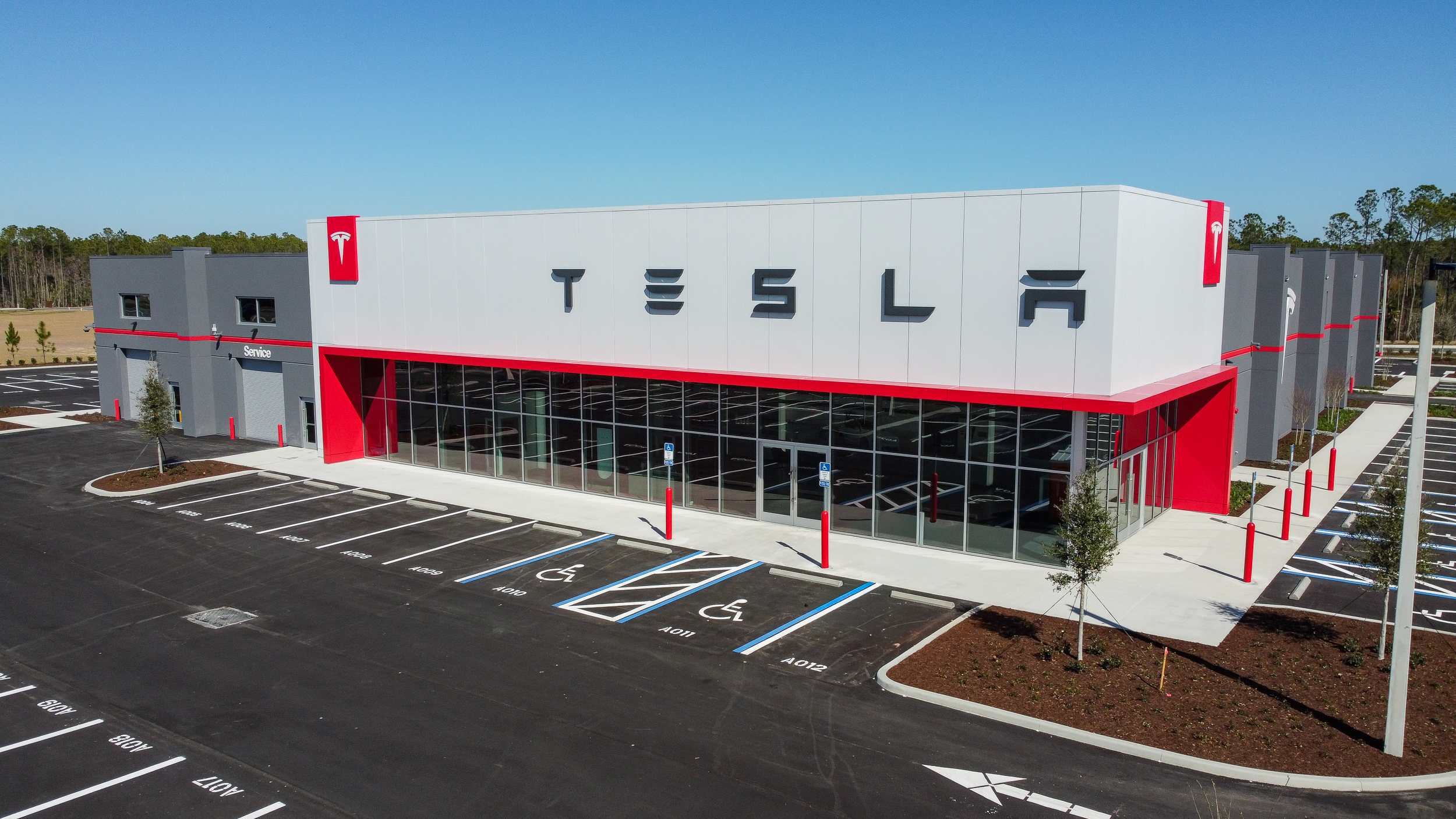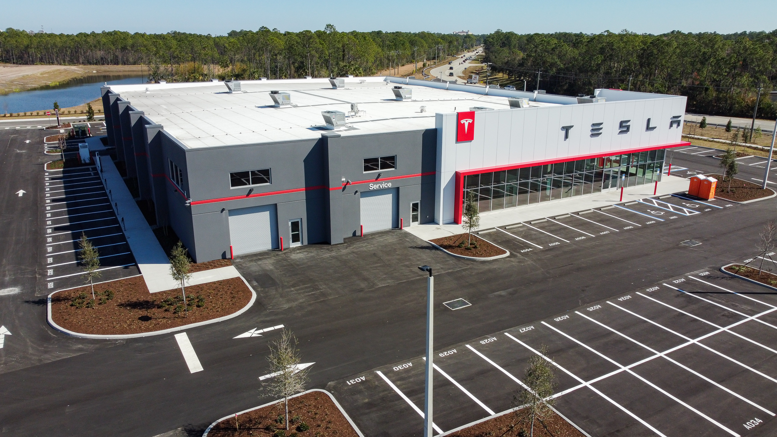 New tilt wall construction of 35,527 sf of a Tesla Sales, Service and Delivery Center with all associated site work.